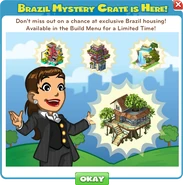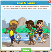 The Brazilian Event is an Event on CityVille which started on July 20, 2011 and ends July 27, 2011. During the event, a number of limited edition Brazilian themed items were released.