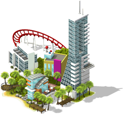 Once completed, Fortune Island will have one residence, three businesses, and a Casino. The Roller Coaster, Restaurant and Arcade businesses are based on time, not the number of visitors. Each will fill in 5 minutes. The Casino acts as a Community building, but will not increase the population allowed, however, can be collected from every 4 seconds and pay out a random amount, up to